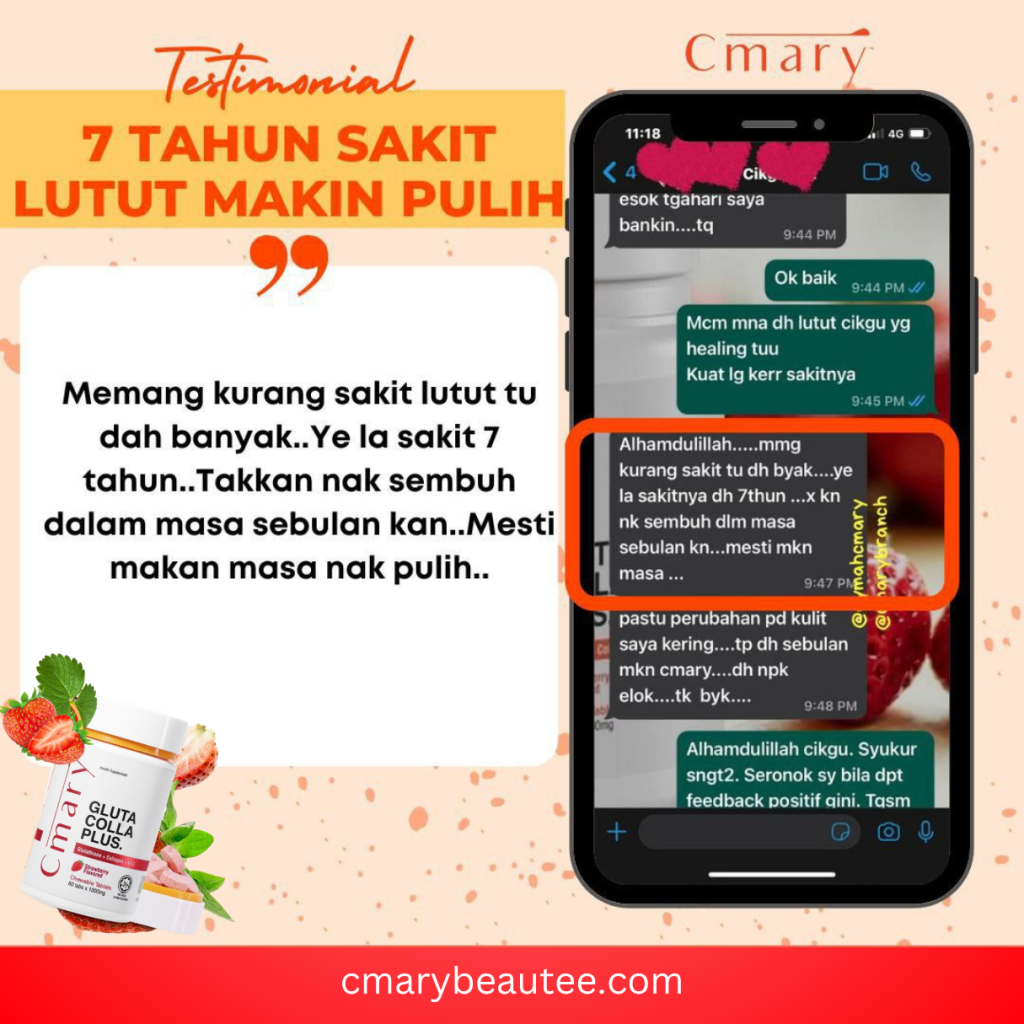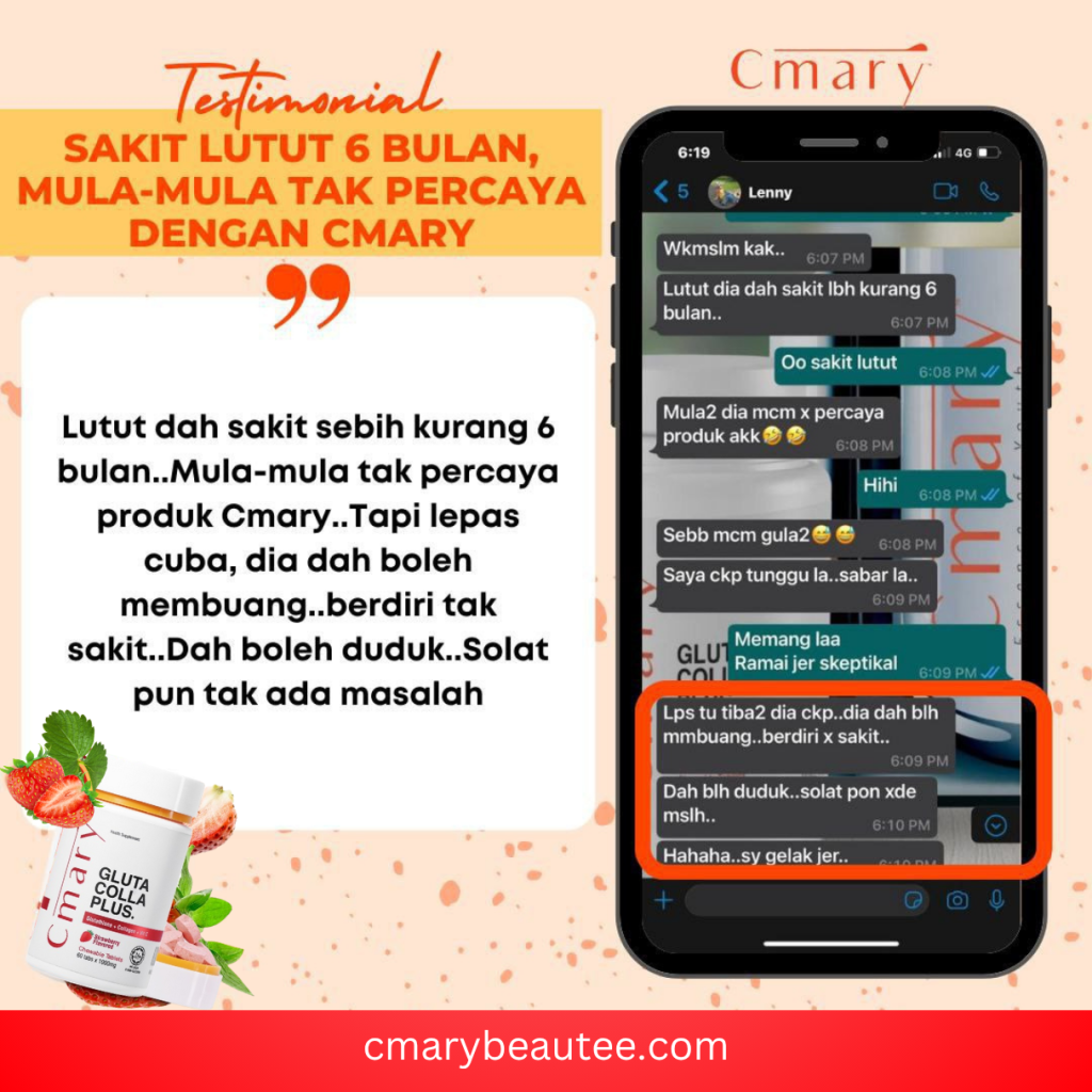 Cmary Supplement yang terbukti berkesan merawat masalah sakit lutut & sendi seawal 1 jam penggunaan. Anda mesti akan rasa perubahan…